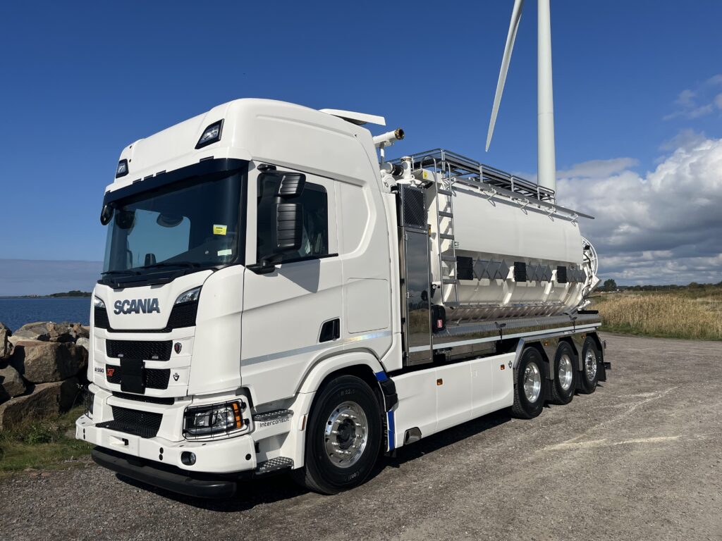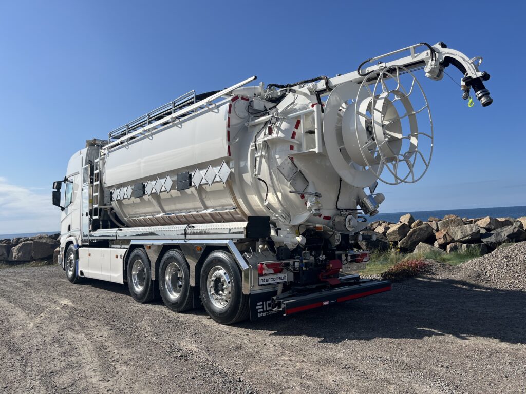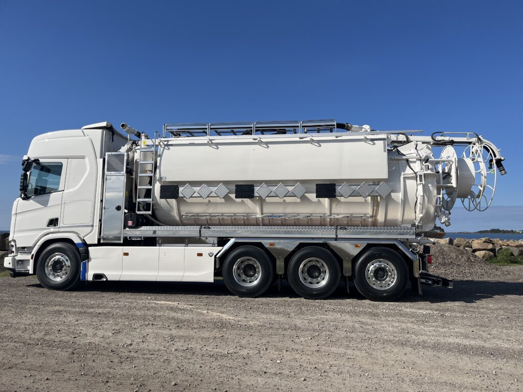 Leverans av Slambil med spoltillsats med ca 17m³ slam i 3 fack (12m³+5m³+4m³) och ca 3,7 m³ vatten i sadeltankar.