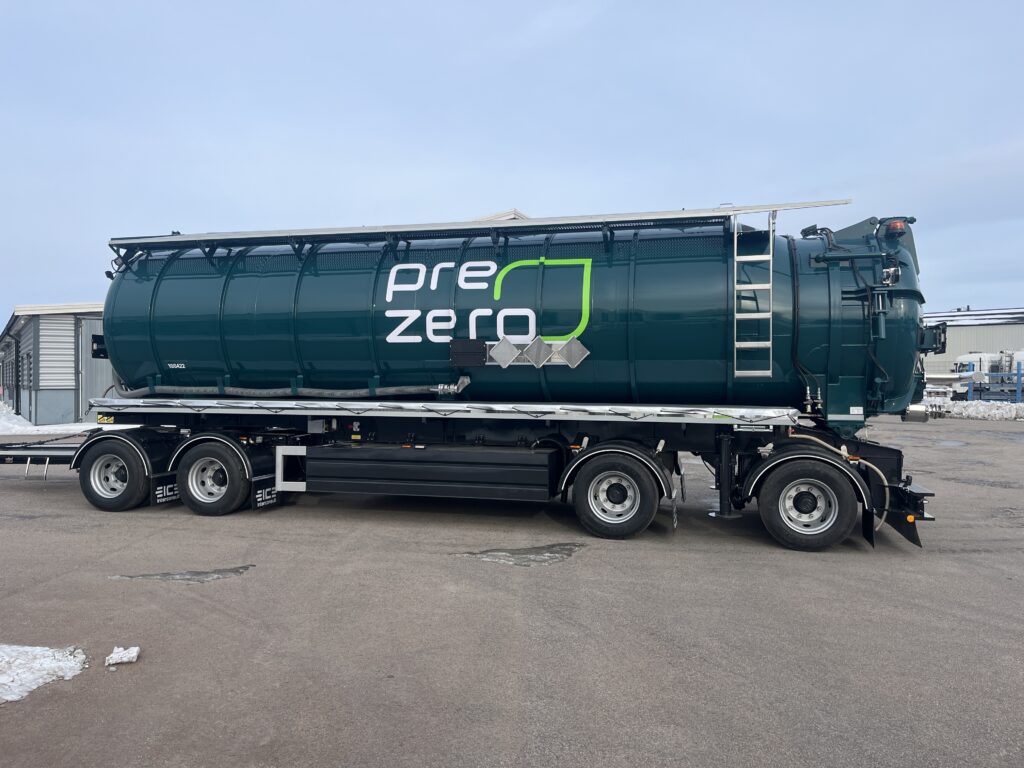 Nyproducerad 4-axlig tippsläpvagn på 31m³ i ett slamfack.