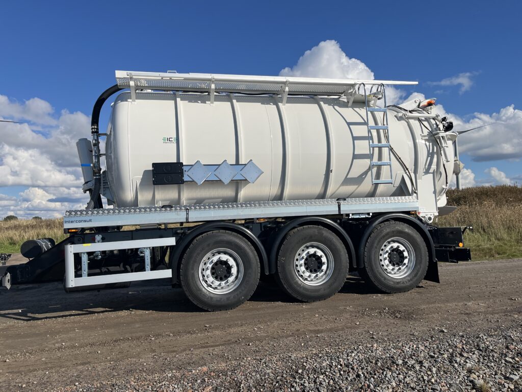 Nyproducerad 3-axlig släpkärra på 18 m3 med ett slamfack
