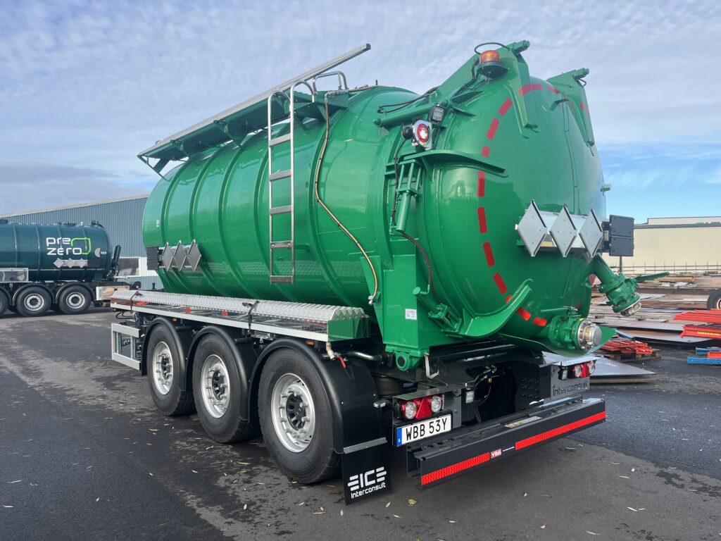 Nyproducerad 3-axlig släpkärra på 18 m3 med ett slamfack