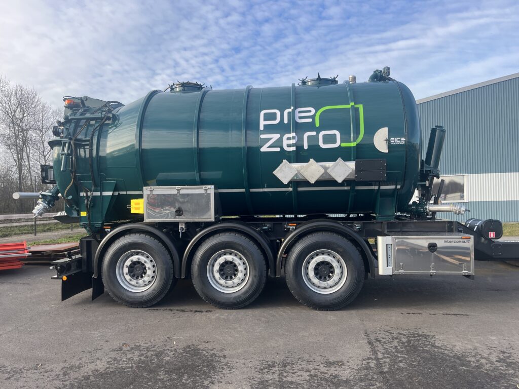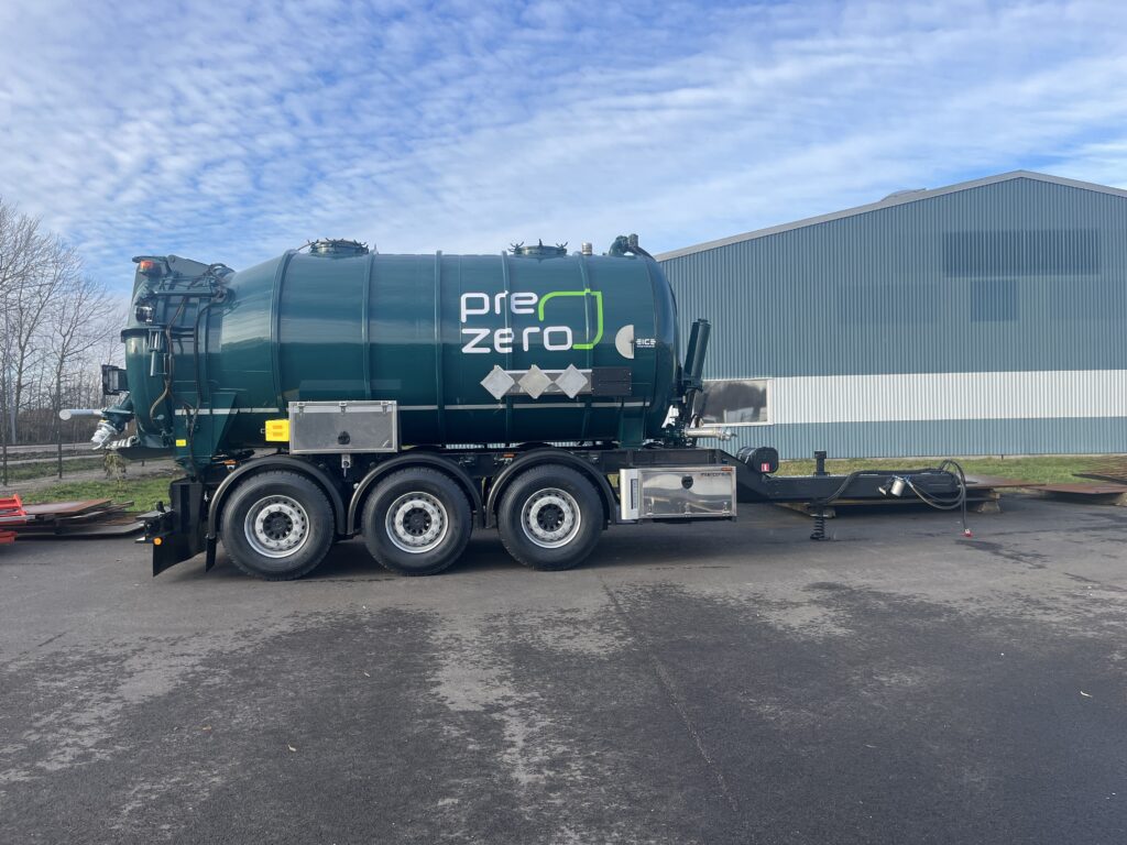 Nyproducerad 3-axlig släpkärra på 18 m3 med ett slamfack
